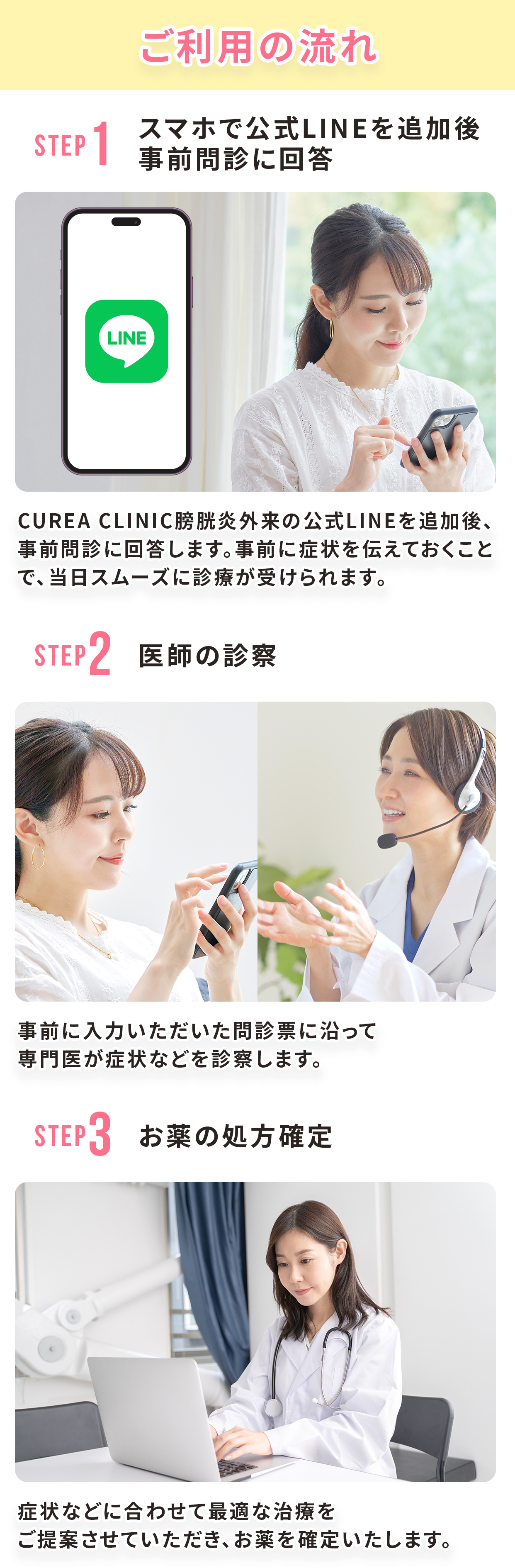 問診票に記入後、5分〜15分ほどで診察が完了いたします。